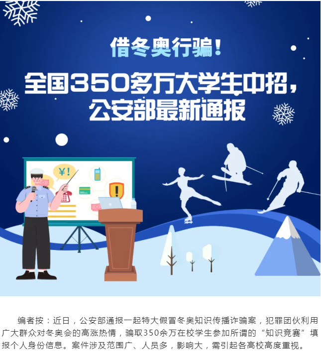 借冬奥行骗!全国350多万大学生中招,公安部最新通报