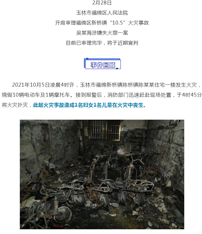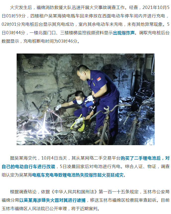 以失火罪起诉!玉林一男子违规改装电动车引发火灾致2人死亡