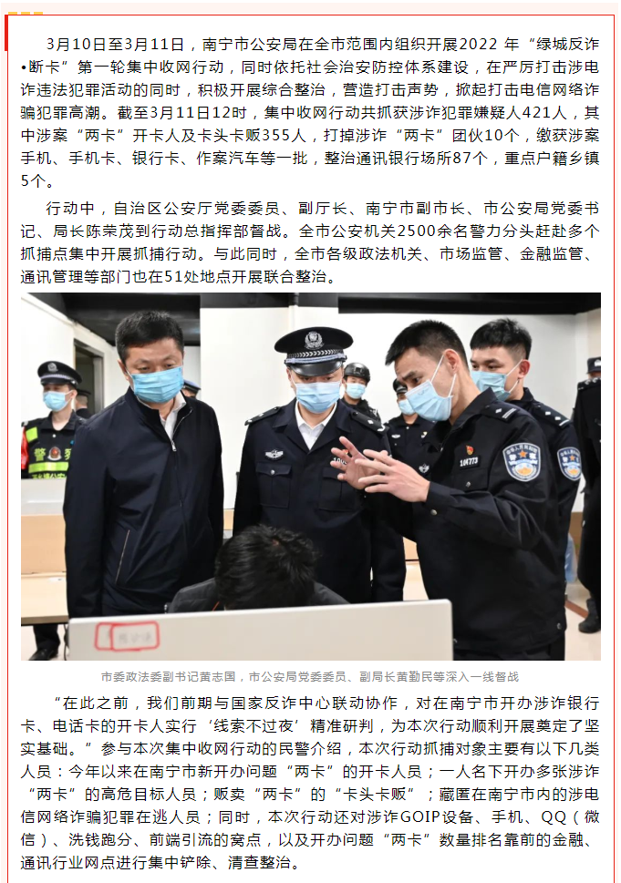 抓获421人!南宁市开展2022年“绿城反诈•断卡”第一轮集中收网行动