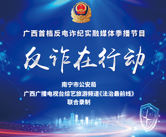 近年来,电信网络诈骗案件持续多发,诈骗手法不断更新,严重危害人民群众财产安全。为筑起全民反诈的天罗地网,广西综艺旅游频道《法治最前线》栏目与南宁市公安局强强联合,推出广西首档反电诈纪实融媒体季播节目《反诈在行动》,第一季共10期。目前已播出5期,相关链接如下: