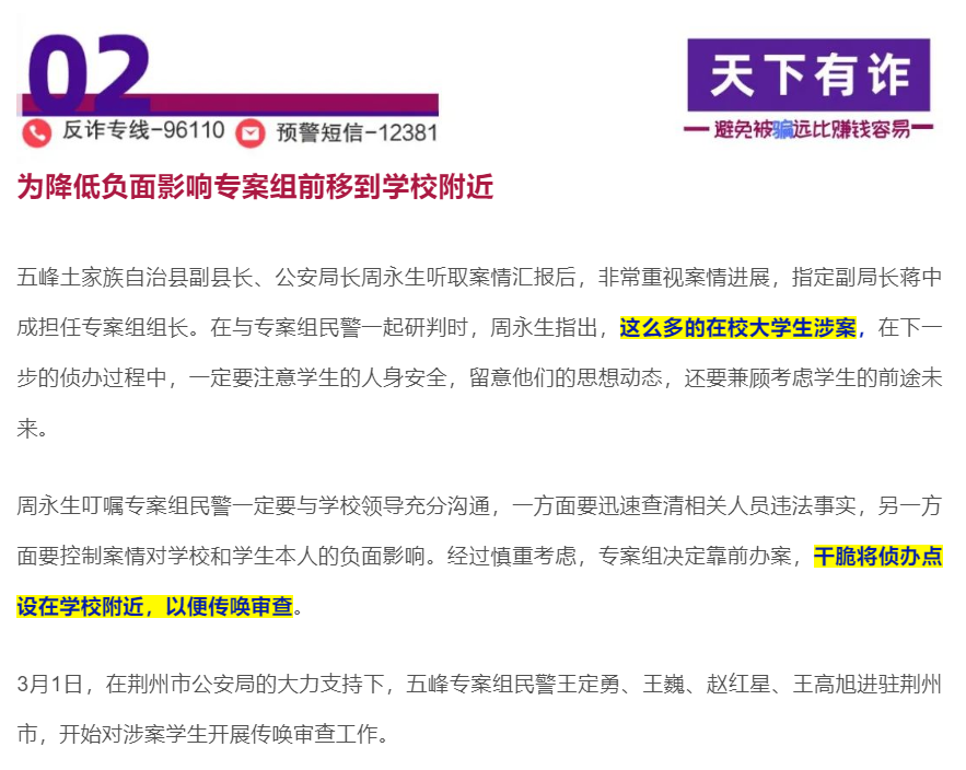 一边是公安机关打击网络电信诈骗的决心