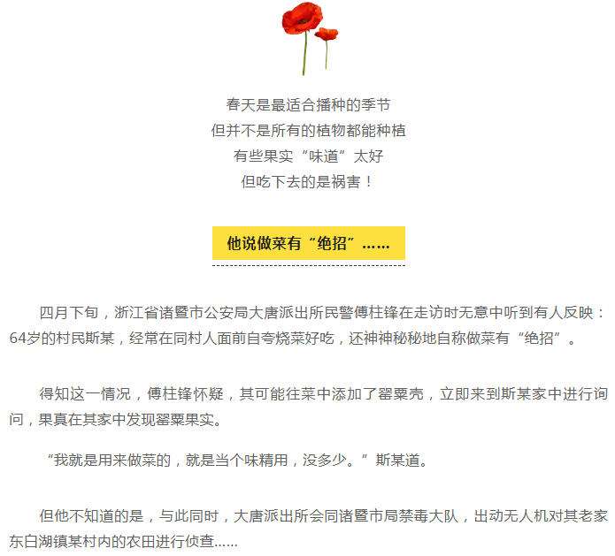 一男子种939株罂粟说当味精提鲜,还向村民炫耀有绝招……
