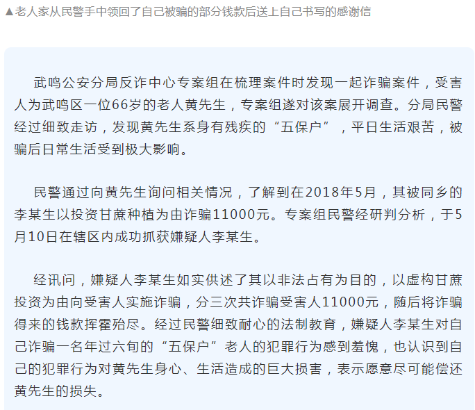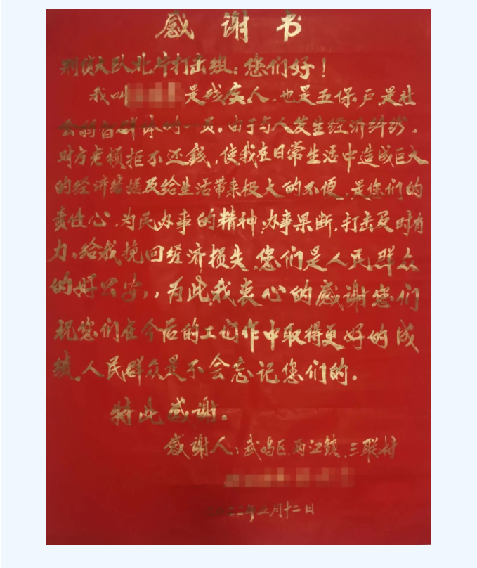 打击养老诈骗丨六旬大爷毛笔书写感谢信 感谢警方追回养老钱