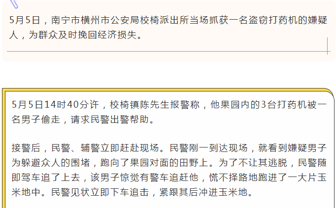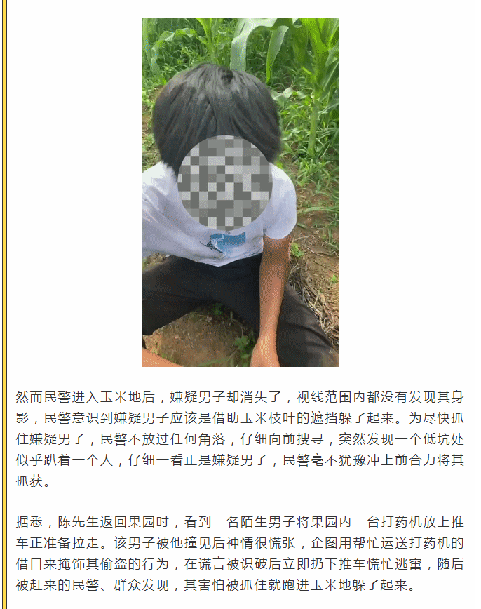躲进玉米地也不行!横州男子偷打药机被抓现行!