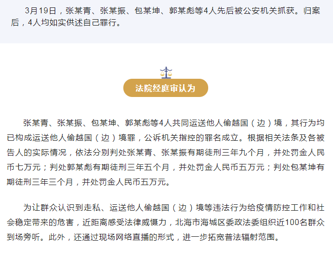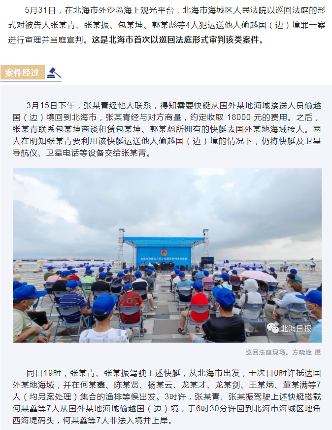 海上犯案海边审判!北海4人运送他人偷越国(边)境全部获刑