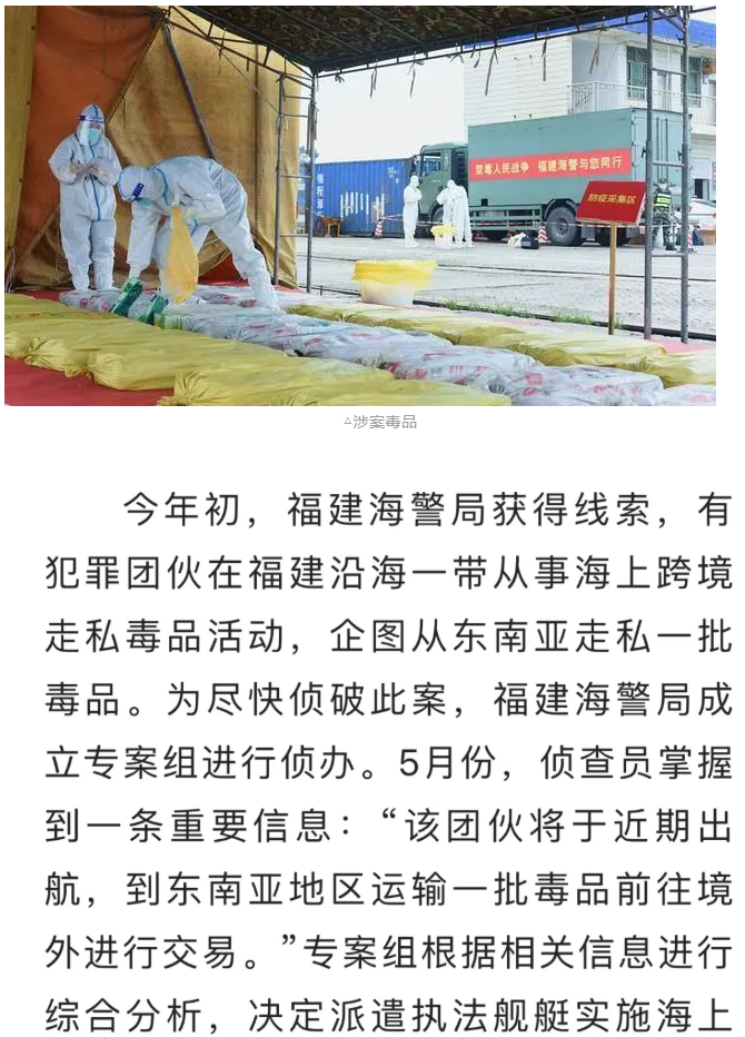 福建海警查获一起特大跨境走私毒品案,缴获毒品600公斤