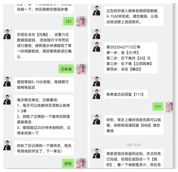 网络刷单有多种形式,骗子往往以兼职刷单名义,先以小额返利为诱饵,诱骗你投入大额资金后,再把你拉黑。切记,天下没有免费的午餐,请勿被眼前的暴利所诱惑,不要轻信“垫付返现”等刷单骗局,涉及金钱交易,需提高警惕,切勿随意转账给陌生人。