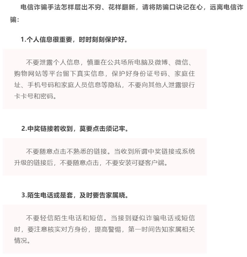 电信诈骗套路多,加强防范不出错