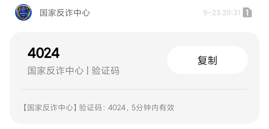 受害人持续收到“国家反诈中心”APP的验证短信,骗子下载国家反诈中心APP,在登录界面填上受害人的手机号,请求验证码登录一次,这样就会有一个验证码发到受害人的手机上,并谎称是当前验资(实际是转账金额)业务的官方验证码,用来迷惑受害人转账。国家反诈中心APP验证码短信的内容仅显示验证码,没有显示其他内容,也没有提示正在登入或办理其他业务,受害人对此疏忽大意,信以为真。