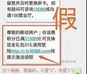 如果不仔细看,可能大部分人都会误以为这真的是10086所发送的,可是仔细观察这里的“l0086”,就会发现它是小写的L而不是1。