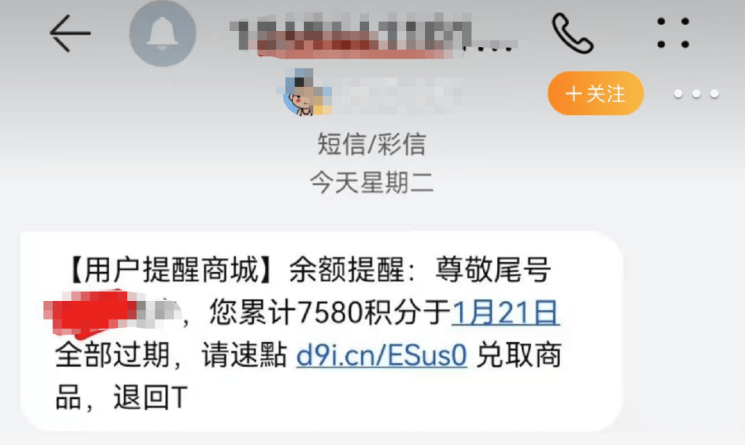 却收到积分兑换短信