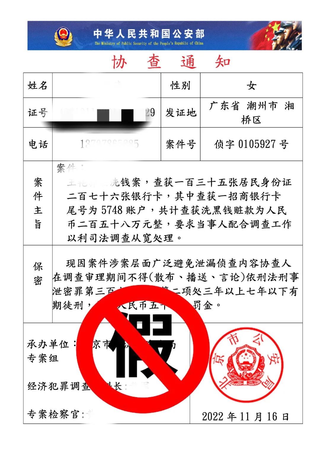 这又是一起典型的冒充公检法的电信诈骗案件,广大群众请切记,公检法人员绝不会用电话通知“你已涉案”,且公检法部门根本不存在所谓的“安全账户”,凡是通过电话、短信要求你对自己的存款进行转账、汇款的,或者声称进行资金审查的,请一概不要相信,防止上当受骗。
