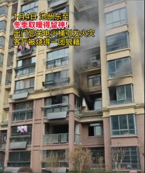 2023年1月4日,安徽池州一高层住宅起火。此起火灾原因为电火桶未关,上方覆盖物蓄热引燃周边可燃物继而引发火灾。
