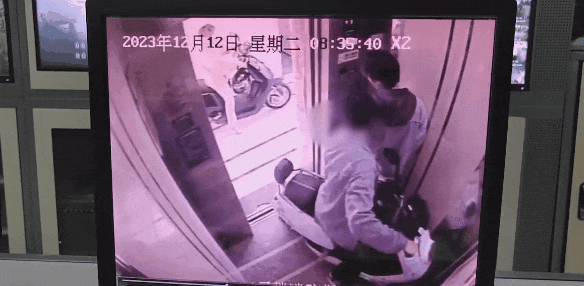监控显示,从2023年12月12日7时起,8名人员先后将4辆电动车推入公寓电梯,物业发现了这个情况,但没能有效制止。