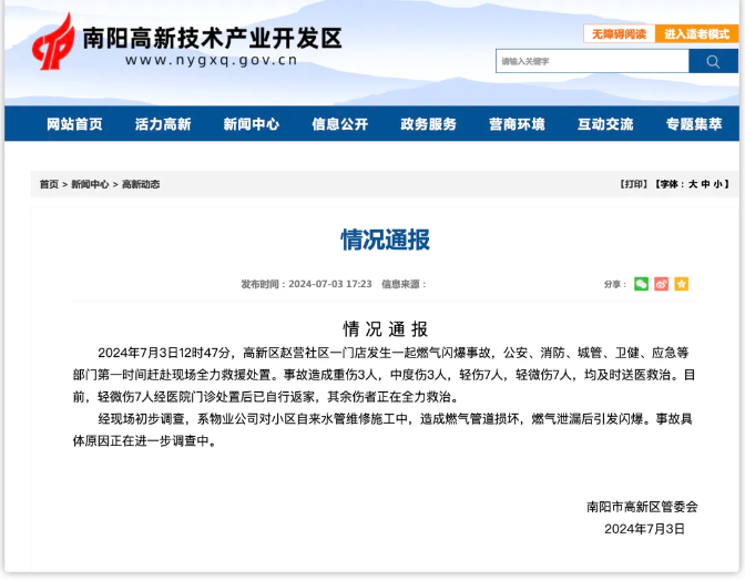 据河南省南阳市高新区管委会通报